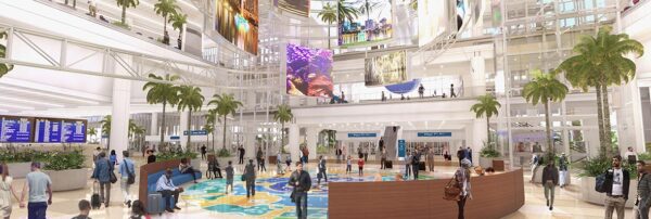 Accompanied by realistic-looking fake indoor palm trees, gigantic LED screens depicting underwater springs and skylight views of blue skies and billowing clouds, Terminal C lets passengers know they have arrived in Florida. And that’s the point, as the world’s seventh-busiest airport makes a US $2.8 billion bet when the 1.8 million-square-foot (167,225-square-meter) terminal opens to the public this week that Florida’s tourism is moving well beyond the pandemic slowdown and has a bright future.