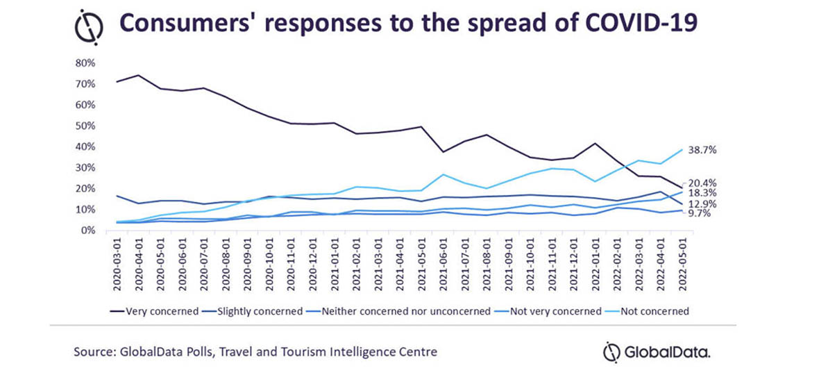 Widespread COVID-19 concern appears to be declining as international travel resumes, amid easing travel restrictions and rising vaccination rates. According to a live poll conducted by GlobalData, a leading data and analytics company, 57% of respondents are “not concerned” or are “not very concerned” about the spread of COVID-19, suggesting that tourists are more prepared to live with COVID-19.